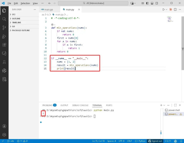if (nums.empty) return0; // 若为空数组,视为已相等